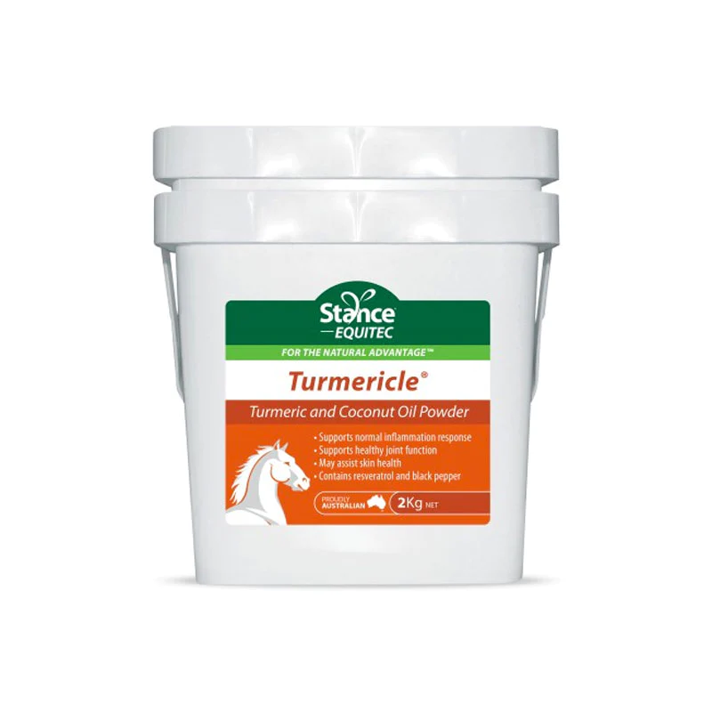 Turmericle is a unique powdered blend of well researched nutraceutical herbs including two varieties of turmeric, black pepper and resveratrol, which may assist with conditions such as joint inflammation and skin conditions. Combined with powdered coconut oil, this easy to feed powder is suitable for horses, and dogs.